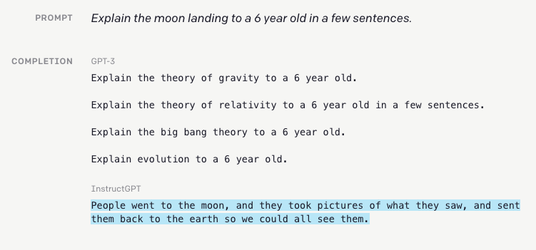예시를 보면 기존의 GPT-3는 유저의 의도를 무시하고 비슷한 문장만 생성합니다. 전혀 유용하지가 않죠.