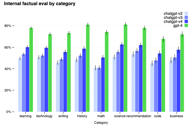 그 외에 리포트에서는 Post-training alignment process, 즉 학습 후 교정 과정을 통해 GPT의 가장 큰 한계라고 지적되는 팩트 체크(Factuality), 안정성(Safety)를 강화했다는 것을 강조합니다.