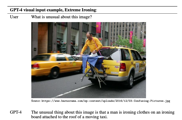GPT-4는 Input으로 이미지와 텍스트를 받고, 텍스트를 Output 합니다. 그렇다면 이런 식의 대화가 가능하겠죠.