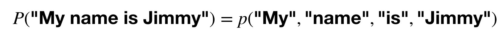 한 문장이 그럴듯함은 어떻게 계산할 수 있을까요? 바로 단어들의 joint probability (동시 확률분포)를 계산합니다. 4개의 단어가 있다면 4개가 함께 발생할 확률을 계산하는 것이죠.