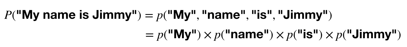 2. 문장 전체의 확률은 간단하게 곱해줍니다.