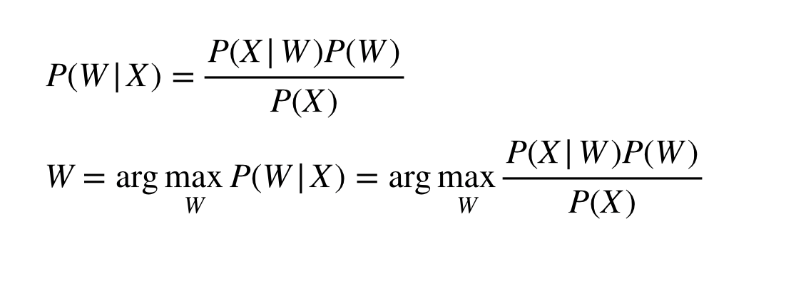 P(W|X) : 소리 X가 주어졌을 때, 텍스트 W는 무엇인가.