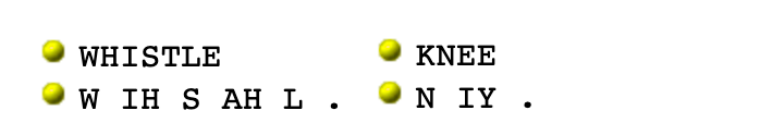 위 예시처럼 knee의 k, whistle의 t 같은 묵음들이 phoneme에서는 나타나지 않는 것을 보일 수 있습니다. CMUdict의 홈페이지에 들어가 직접 이 단어 저 단어의 발음 표기 방법을 알아보세요!