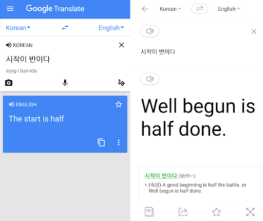 그렇게 몇 년이 흘렀습니다. 지금 G사의 Translate 그리고 국산 N사의 파파고를 보면 그때와는 비교도 할 수 없을 정도로 꽤나 높은 품질의 번역을 보장합니다. 당연히 아직 사람 번역가를 완벽하게 대체할 수 있다고는 할 수 있다고는 없겠지만, 이렇게 빠른 속도로 발전하는 것을 보면 조만간 영어 공부를 그만 해도 되는 걸까 싶기도 합니다 (번외: 구글 번역기만 있으면 되나요).