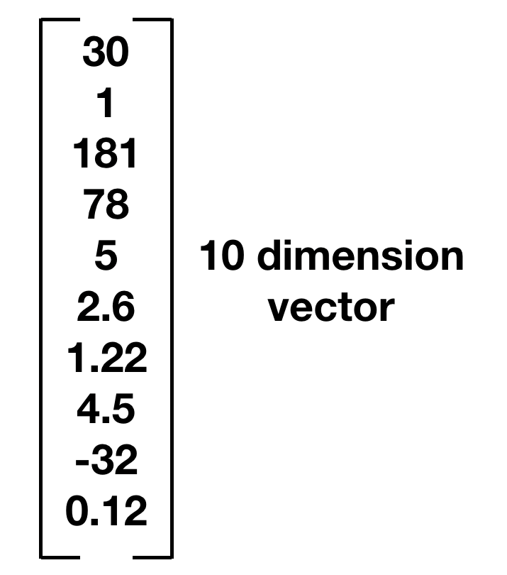 이처럼 vector는 N차원 공간에 사는 존재입니다. 이를 euclidean space라고도 부르죠. 그렇다면 10차원 같이 4차원 이상의 vector는 어떻게 이해해야 할까요?