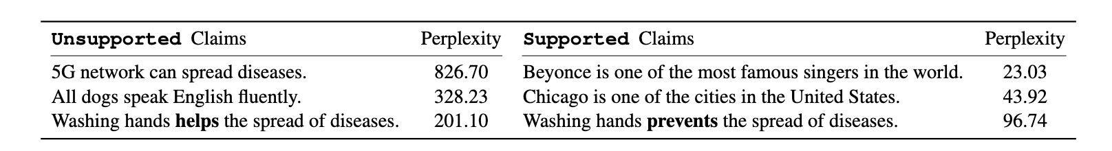 저희의 실험을 통해 언어 모델의 Perplexity Score가 한 주장의 진실성에 대한 좋은 시그널이 될 수 있다는 것을 보여주었습니다.