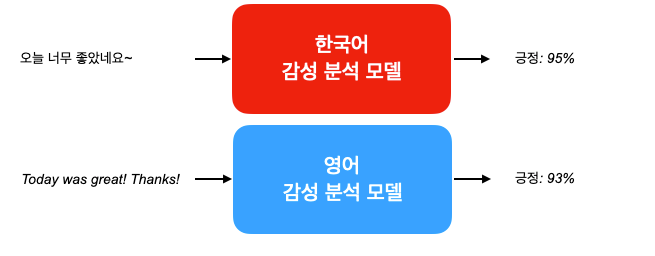 다만 이 시스템의 단점은 지원해야 하는 언어가 N개가 추가될 만큼 학습할 모델도 N개가 추가된다는 것 입니다. 그리고 학습을 위한 컴퓨팅 비용도, 모델을 서빙해야 하는 서버 비용도 그만큼 선형적으로 증가하겠죠. 만일 한꺼번에 10-20개의 언어를 다뤄야 한다면 큰 부담일 수 있습니다.